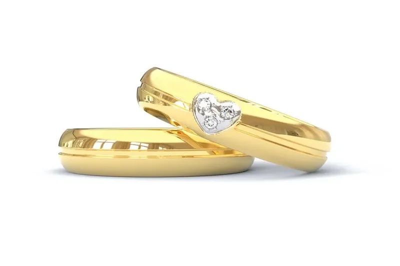 aliancas finas de casamento Alianca de Ouro 18K Abaulada Lisa com Friso Fosco e Coracao com Brilhantes AS2221 edited